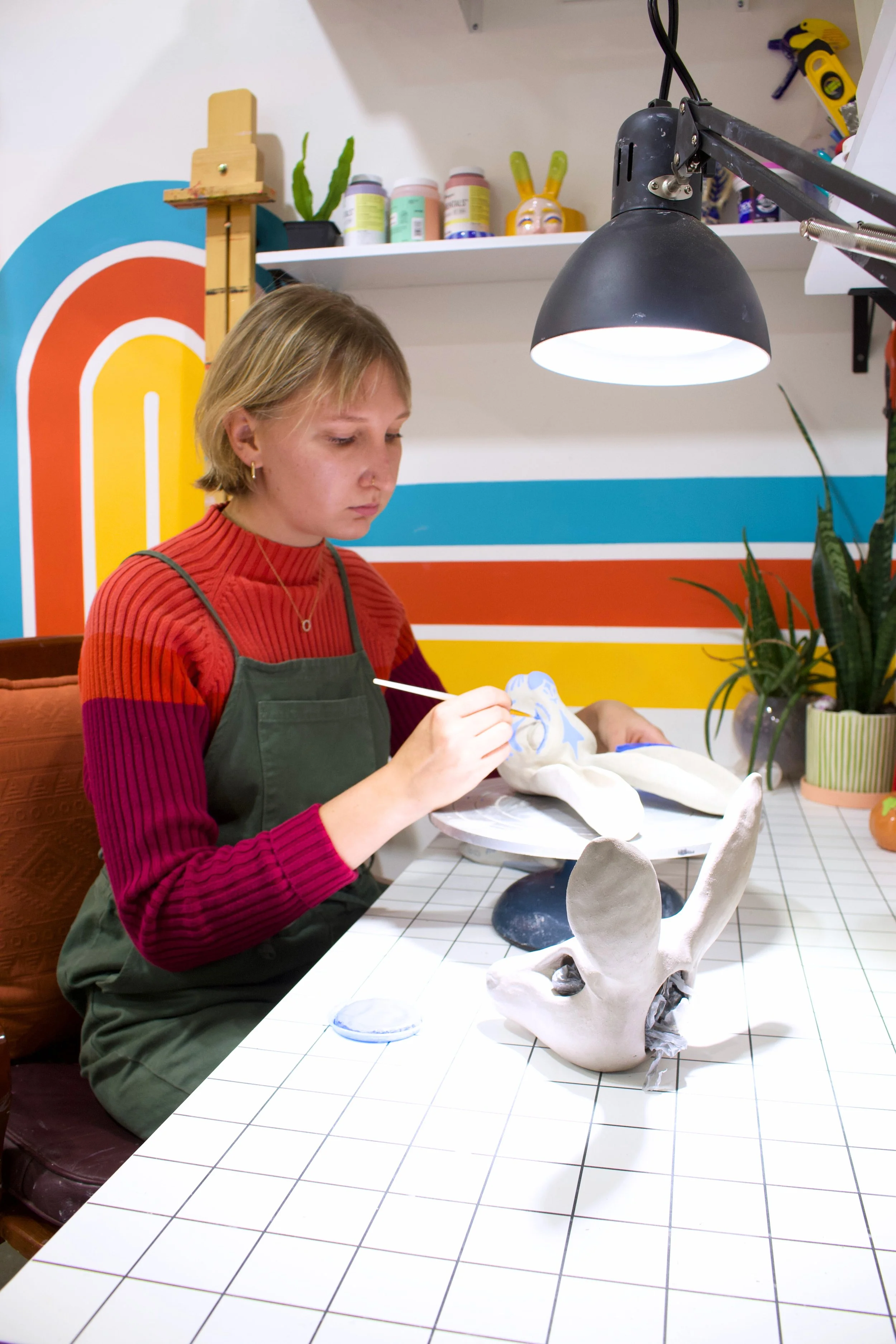 My work is a celebration of nature, the decorative arts, folk traditions, and whimsical motifs. I’m inspired by the colors, patterns, and rhythms found in the natural world, and what makes my work unique is how I translate those elements into vibrant, abstract compositions. I love studying the shapes and shadows of animals and plants, breaking them down into simplified forms and reimagining them through layers of color and intricate pattern. Much of my visual language is inspired by rosemaling—a traditional Norwegian folk art known for its flowing lines, stylized floral designs, and detailed brushwork. I use this influence to create contemporary pieces that feel both timeless and full of joyful energy.